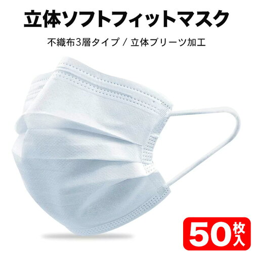 【在庫あり/即納】2個以上で送料無料!不織布マスク 50枚入(箱入) 立体型ソフトフィットマスク 使い捨てマスク 白色 マスク 50枚 3層構造 mask フェイスマスク PM2.5対応 99%カット 花粉対策 風邪 大人 防護 花粉 防塵 男女兼用 ホワイト