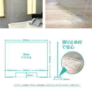 飛沫防止 アクリルパネル 窓あき 3mm厚 / 透明アクリル パーテーション アクリル板 アクリルスタンド 衝立 テーブル デスク カウンター 仕切り 間仕切り パネル 窓付き 滑り止め付き 飛沫感染対策 ウイルス対策 partition-500x600
